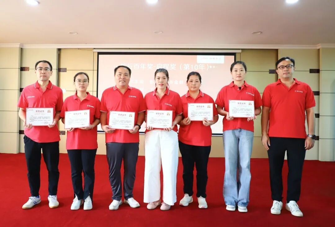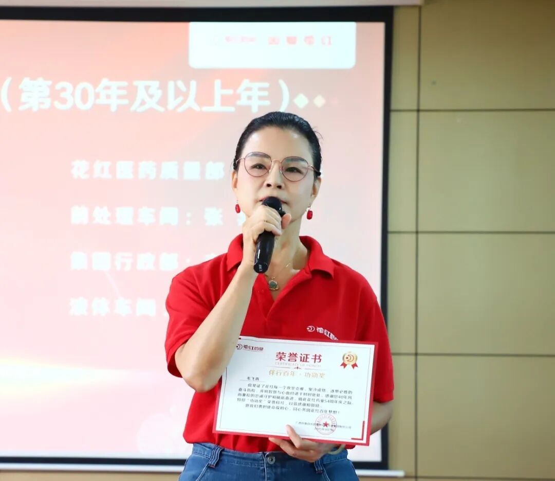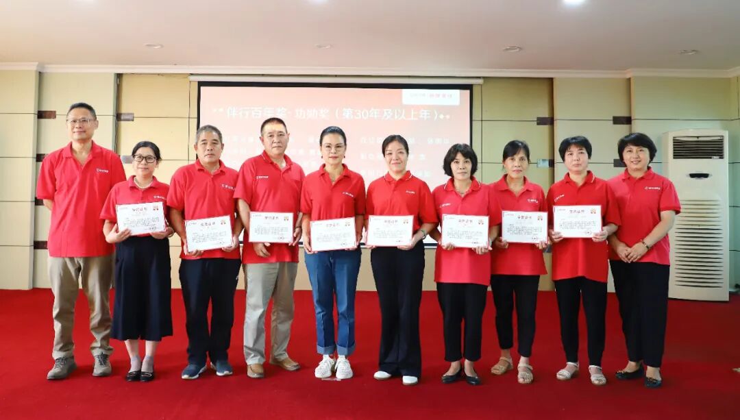 司慶日,不僅是對企業(yè)成長的一次禮贊,更是對每一位與花紅并肩同行、為之奮斗的員工表達(dá)關(guān)懷與感謝的重要契機(jī)。為此,自2023年起,公司陸續(xù)設(shè)立“慧心百年”“伴行百年”“卓越工程師”等獎項(xiàng),旨在表彰那些長期奉獻(xiàn)、勤勉付出的優(yōu)秀花紅人。這幾個獎項(xiàng)的設(shè)立,承載著花紅藥業(yè)集團(tuán)對員工每一份付出的珍視,也體現(xiàn)了企業(yè)以人為本,共創(chuàng)共享的價值理念。 慧心百年獎:旨在表彰在企業(yè)日常生產(chǎn)經(jīng)營中,以非凡智慧、深遠(yuǎn)眼光與卓越行動,為公司當(dāng)年度重大突破、長期競爭力構(gòu)建、運(yùn)營效率提升或可持續(xù)發(fā)展,做出超越本職的、極具前瞻性特殊貢獻(xiàn)的員工或團(tuán)隊(duì)。 卓越工程師:旨在激發(fā)工程技術(shù)人員深耕專業(yè)、追求卓越,并以標(biāo)桿力量帶動整體團(tuán)隊(duì)能力提升。激勵員工以勤奮為舟、以鉆研為槳,在技術(shù)領(lǐng)域?qū)崿F(xiàn)自我突破的員工。 伴行百年獎:旨在感謝與公司同舟共濟(jì)、攜手并進(jìn)的忠誠員工,從第5年到第30年乃至更長時間的陪伴,他們見證了花紅的每一次蛻變,也用自己的實(shí)際行動詮釋了責(zé)任與擔(dān)當(dāng)。該獎項(xiàng)也作為企業(yè)的傳統(tǒng)榮譽(yù),在公司每年的司慶日活動上對符合條件的員工進(jìn)行頒獎。
