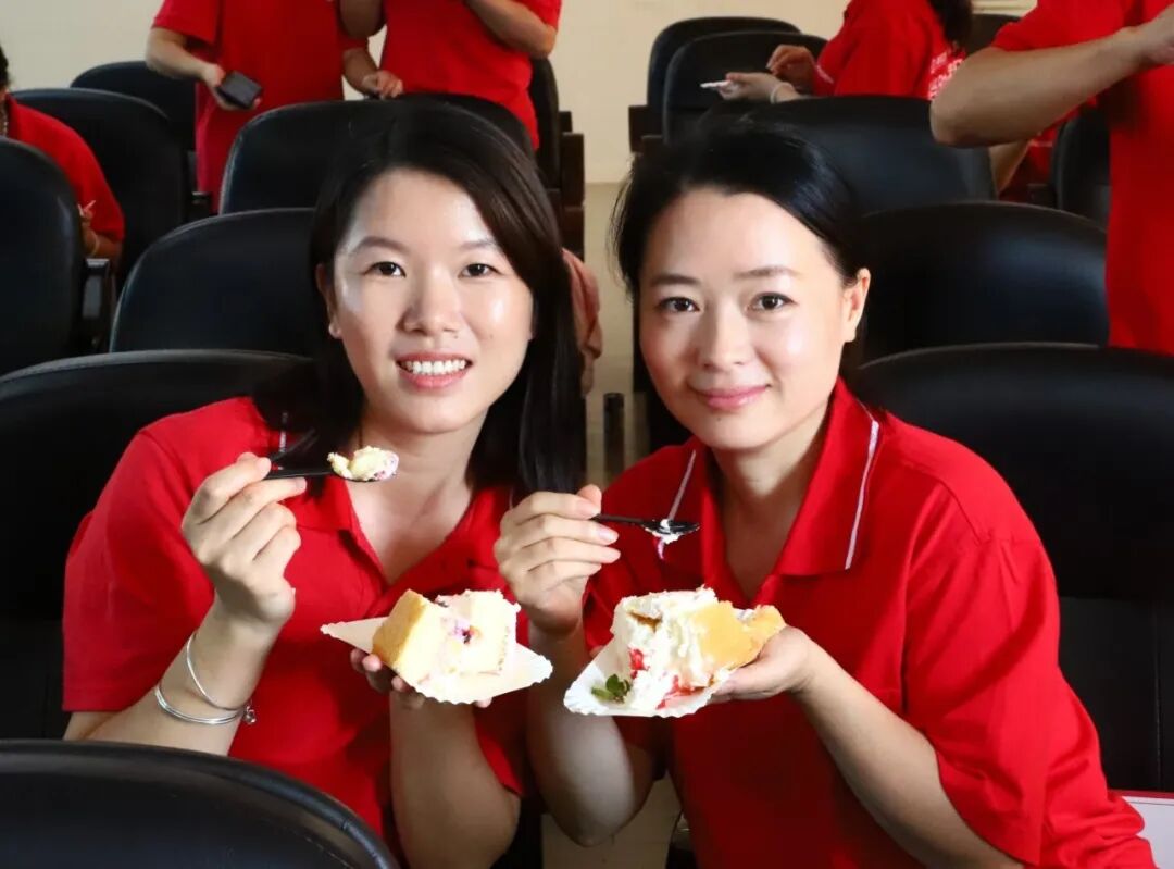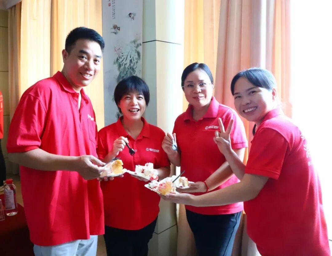 現(xiàn)場人員分享甜蜜蛋糕,暢談奮斗歲月。每一個畫面都凝聚著花紅人深厚的情誼與堅(jiān)定的共同信念。